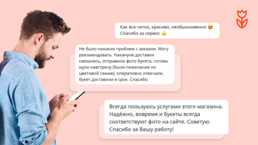 С негативными отзывами проблем никаких: их пишут все, кроме самых ленивых и самых великодушных. А вот как уговорить клиента похвалить ваш товар или услугу? Давайте поделимся несколькими лайфхаками. Все-таки у нас на Flowwow набрался уже 1 млн отзывов. 80,5% отзывов, которые мы получили за год, «пятерочные»: максимальный балл по всем параметрам. Расскажем, как мы помогаем нашим магазинам собрать отзывы от клиентов. Зачем вообще нужны отзывы? Во-первых, репутация. Неважно, как давно вы продаете, главное — сколько людей успели о вас узнать, купить и похвалить ваш товар...