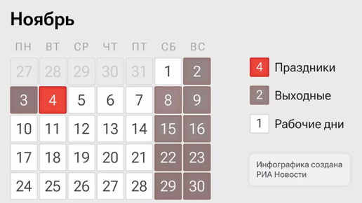 Как отдыхаем в ноябре 2025 года: перенос выходных и трехдневная рабочая неделя