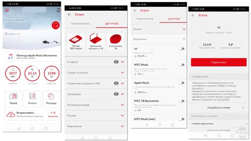 Лайфхак для настоящих любителей халявы. Итак, заходим в приложение «Мой МТС» на своём смартфоне или планшете. Переходим в раздел Услуги, как указано на скриншоте, там выбираем пункт доступные, пролистываем вниз, и находим раздел развлечения. В этом разделе нас интересует первая услуга по названием ivi. МТС предоставляет нам аж два месяца бесплатной подписки. Кто не знает, IVI - один из популярнейших онлайн кинотеатров на территории СНГ. По подписке конечно же доступны не все фильмы, и полной халявы не ждите...