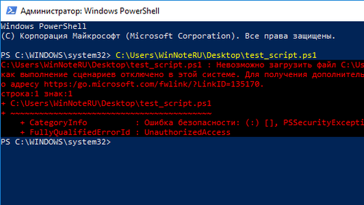 Windows PowerShell. Выполнение сценариев отключено в этой системе