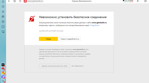Ошибка «Невозможно установить безопасное соединение». Код ERR_CERT_AUTHORITY_INVALID.