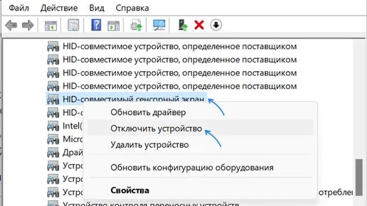 В параметрах Windows 11 и Windows 10 не предусмотрено какой-либо опции для отключения сенсорного экрана, если ваш ноутбук им оснащен, поэтому для отключения придется обратиться к диспетчеру устройств. Шаги будут следующими: 3...