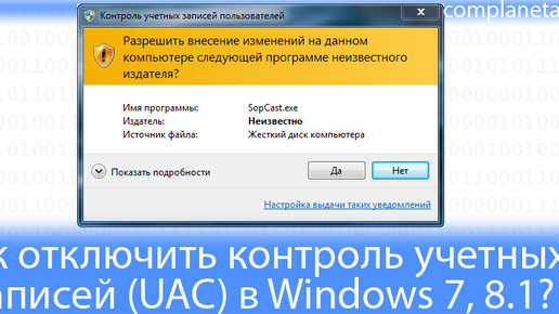 Как отключить контроль учетных записей (UAC) в Windows 7, 8.1?