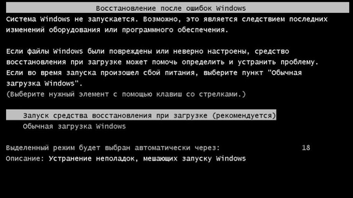 Как отключить автоматическое восстановление при загрузке Windows 7