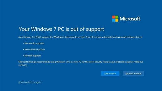 14 января 2020 года, как известно, Microsoft официально прекращает поддержку ОС Windows 7. А чтобы юзеры не заскучали, прям с 15 января компы начнут "ненавязчиво" напоминать им об этом полноэкранной заставкой с текстиком вроде "Ваш ПК с Windows 7 не поддерживается". ... или Your Windows 7 PC is out of support, если на англицком. Соответствующая программулинка, отвечающая за то, чтобы это самое уведомление "радовало" пользователя с запланированной регулярностью, включена в дежурный ежемесячный накопительный...