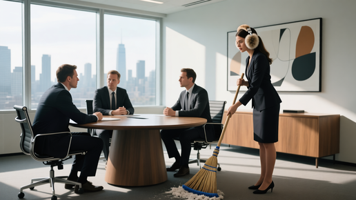 Рассказ: «Голос правды» Часть первая. Тишина, которая видит всё Анна Петровна работала уборщицей в офисе компании «Эверест Груп» уже восемь лет. Ей было пятьдесят два года, волосы — аккуратно собраны в серебристый пучок, взгляд — тихий, но проницательный. Она носила форму цвета морской волны с вышитым логотипом компании и каждый день, с 20:00 до 23:00, тщательно вытирала пыль, полировала стеклянные перегородки, мыла полы и уносила мусор из кабинетов руководства. Но самое главное — она была немой...