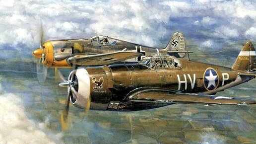 Fw 190 не смог сбить P-47. Уникальный случай.. (видео)