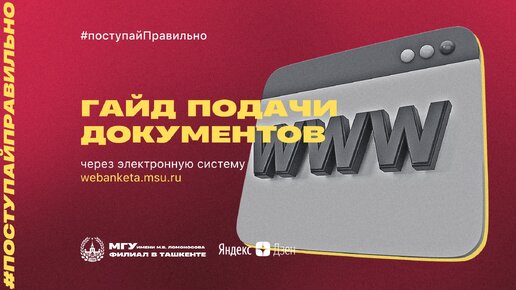 Дорогие абитуриенты! Эта инструкция написана, чтобы облегчить для Вас процесс подачи документов в Филиал МГУ имени М.В. Ломоносова в Ташкенте через электронную систему webanketa.msu.ru Внимательно ознакомьтесь с этим руководством перед отправкой Ваших документов – это поможет избежать лишних хлопот и ускорит для Вас процесс регистрации. Уточним пару моментов — Документы следует загружать только в веб-анкету На почту exam@msu.uz отправлять документы нужно только в случае, если Вы хотите осуществить перевод из другого вуза или восстановиться, как ранее отчисленный студент МГУ...