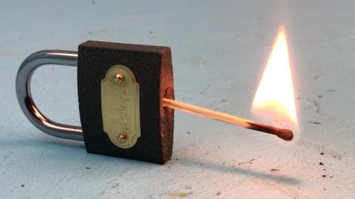 В этой статье я расскажу как открыть навесной замок. С помощью обычных спичек. Итак вводные данные: у нас есть небольшой замочек, мы его закрыли ключами. И взяли коробок спичек для эксперимента. Берем небольшую емкость и начинаем счищать со спичек серу в эту емкость. Или можно сразу чистить серу в замочную скважину в замке. И уплотнять ключиком. Набив достаточное количество серы в замок мы начинаем пробовать его открыть. А сделать это просто. Достаточно просто поджечь. Что я и сделаю с помощью целой спички...
