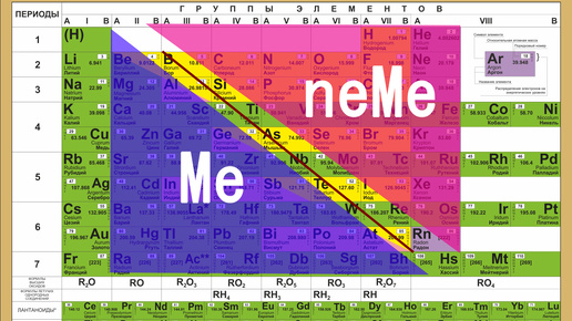 И снова здравствуйте гости планеты Химия! В прошлое ваше посещение, когда мы разбирались с определением валентности, я пообещала так же обучить вас умению отличать металлы от неметаллов. Обещания нужно выполнять, что я с удовольствием сейчас сделаю. И да, это одно из самых простых, но очень важных базовых умений, необходимых для решения более сложных заданий. Для этого нам понадобится таблица Менделеева. Давайте еще раз вспомним, как она устроена: горизонтальные ряды именуются периодами, а вертикальные столбцы – группами...