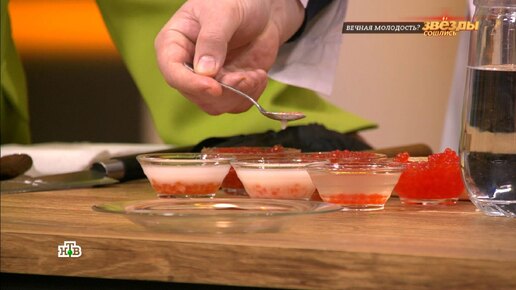 [ Смотреть видео на сайте НТВ ] Врач-гастроэнтеролог Алексей Парамонов рассказал, как отличить настоящую красную икру от имитированной. Врач напомнил, что икра должна быть добыта из рыбы, однако иногда ее изготавливают из рыбного бульона, желатина и растительного масла. В студии программы «Звезды сошлись» он взял красную икру трех брендов и проверил ее по двум параметрам. Алексей Парамонов, врач-гастроэнтеролог: «В первой все икринки одинакового размера. Если мы смотрим на свет, то мы можем увидеть, что она полупрозрачная, там какая-то точечка внутри — это зародыш...