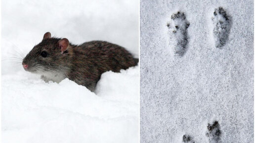 Отличить крысу и мышь по их следам несложно. На снегу отчетливо заметны подошвенные бугорки. Их размер значительно меньше длины стопы зверька: