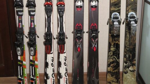 Вопрос, задаваемый практически каждый раз на первых занятиях, звучит примерно так: "Где правая и где левая лыжа?". Раскрываю. Чаще всего, как на любительских так и на профессиональных (цеховых) горных лыжах, правая и левая лыжа ничем не отличаются. Но не всегда! Фотография моих пар лыж как нельзя лучше демонстрирует этот тезис :) Так исторически сложилось, что лишь одна из 4х пар имеет одинаковые правые и левые лыжи :) А именно первая, эланы, это мягкие лёгкие старенькие слаломные лыжи, на которых...