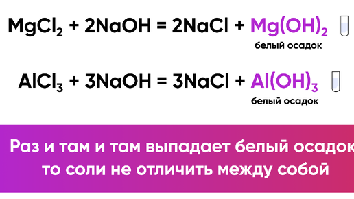 Сегодня разберем один из самых неприятных моментов в 24 задании 🔥 24 задание - задание на аналитическую химию. В нем тебя просят отличить одно вещество от другого при помощи одного из реагентов на выбор 👇 Часто просят отличить между собой две соли: MgCl2 и AICI3 - это очень похожие соли, но первая образована "основным" металлом, а вторая - "амфотерным". И многие почему-то не выбирают щелочь, как отличный реактив для этих двух парней. Такие выпускники...