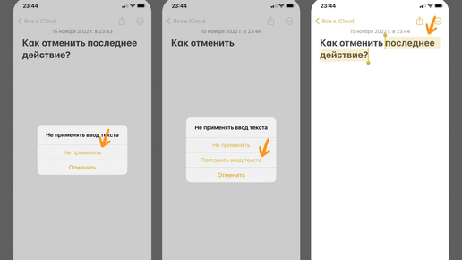 Как отменить удаление текста в заметках на iPhone