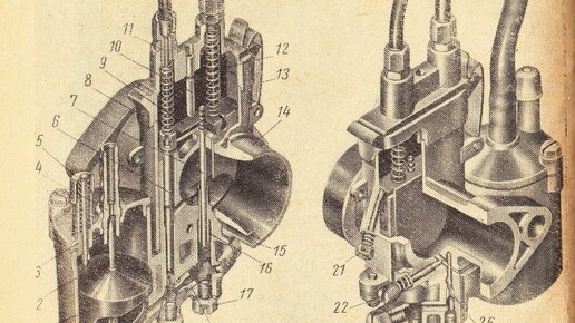 На мотоцикле Восход первых выпусков установлен карбюратор тип К-36Б, имеющий две дозирующие системы - основного и холостого хода, а также обогатительное устройство. Чтобы промыть и прочистить необходимо, разобрать в следующем порядке: 1 - закрыть бензиновый краник отсоединить бензиновый шланг; 2 - отстегнуть защелки снять крышку корпуса вместе с тросами, золотником и топливным корректором; 3 - снять резиновую муфту; 4 - отвернуть две гайки крепления снять карбюратор; 5 - снять уплотнительные прокладки; 6 - произвести полную разборку...
