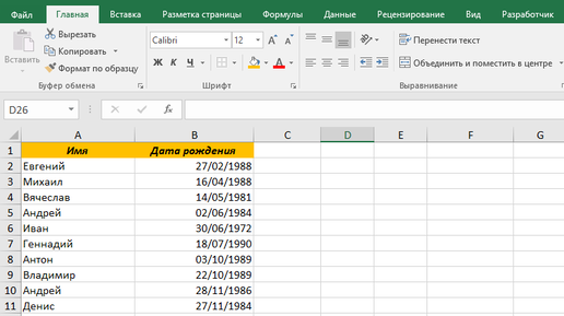 Здравствуйте, друзья! Возможно у вас бывала ситуация, когда необходимо отсортировать даты по месяцу. Например, если это Дни рождения коллег, и нужно понимать, у кого знаменательная дата раньше других. *** Добро пожаловать на канал #мудрости. Не забудьте подписаться, чтобы не пропускать новые публикации. Комментируйте! Читателям и автору важно ваше мнение! *** Предположим, Дни рождения записаны в таблице: Попробуем отсортировать по полю «Дата рождения»: В этом случае Excel и Calc отсортируют нам данные в ячейках по годам: Это не совсем то, что нам нужно...