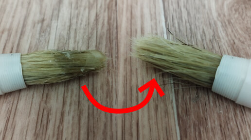 Иногда случается, что по недосмотру или забывчивости кисть, которой наносят клей "семейства" ПВА остается не промытой и засыхает. Засохший клей уже просто так не отмоешь и нередко кисть просто выбрасывают, хотя, если она именно для нанесения клея, то состояние и качество ворса особого значения не имеют - лишь бы не выпадали и были мягкими. Для удаления засохшего клея я использую не просто горячую воду, а КИПЯТОК. При этом имеет значение из чего и как сделана и сама кисть. У меня для клея идут ЩЕТИННЫЕ...