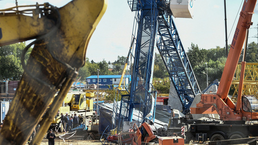 Падение башенного крана на стройке