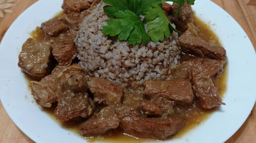 Как я тушу говядину. Мясо становится мягким, ароматным и без присущего ему характерного запаха говядины. А на гарнир сегодня - гречка!