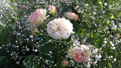 Розы и гипсофилы – взаимная любовь в одном цветнике