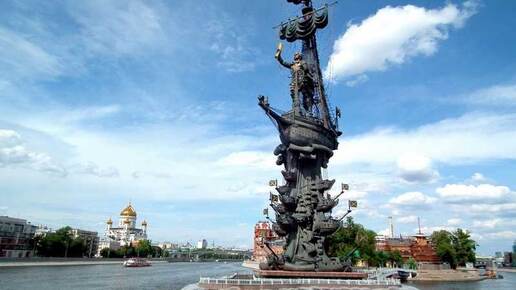 Памятник Петру I на берегу Москвы-реки: монумент, споры и андреевские флаги на растральных колоннах
