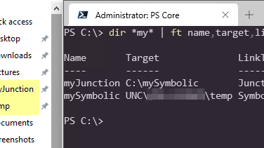 В чате инсайдеров опять задали вопрос о том, как различать в быстром доступе папки с одинаковыми именами. Я напрочь забыл, что публиковал решение в блоге и сначала даже ошибочно посоветовал символическую ссылку (она не сработает, поскольку в быстром доступе отображает имя исходной папки). Соединение (локальные папки) Напомню, что в предыдущей статье на эту тему я решил задачу соединением. mklink /j myJunction c:\temp В области переходов будет отображаться имя соединения, myJunction. Именно в этом заключался мой второй совет...