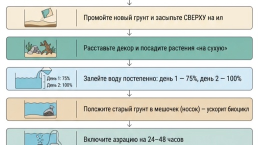 Недавно я обнаружила, что на канале есть видео о редизайне аквариума, но нет ролика о его перезапуске. Поскольку вопросы о том, как сделать это правильно, возникают регулярно, я решила составить для вас подробную инструкцию...