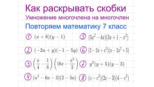 Как раскрывать скобки? Умножение многочлена на многочлен. Повторяем математику за 7 класс