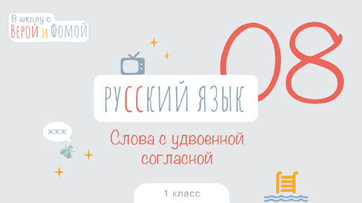 Слова с удвоенной согласной. Русский язык, урок 8 (аудио), 1 класс. В школу с Верой и Фомой