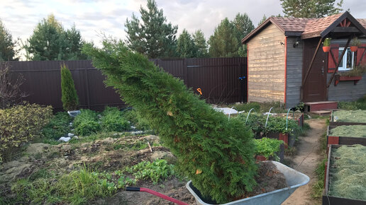 Добрый день, подписчики и гости канала. Сегодня я поделюсь опытом пересадки больших (более 1,5 м.) хвойных культур, а именно конусообразной туи Смарагд. О всех прелестях данного вида растения распространяться не буду, для этого на канале есть много информации. Наверняка случалось у многих из Вас, что растение через несколько лет роста оказывается не совсем в "удачном месте", как видится в момент посадки. Или, это мой случай, когда организуется новая зона хвойных культур, а подходящего размера растения в питомниках днём с огнём не сыщешь...
