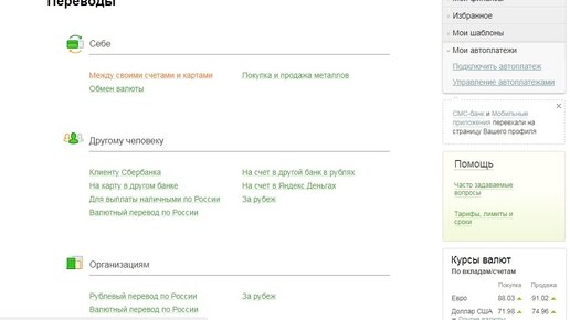 Как перевести деньги со своей карты Сбербанка на свою же карту другого банка