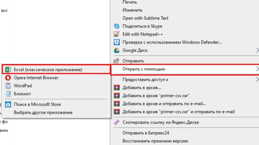 Умение открывать CSV файлы в Excel позволит анализировать и использовать документы с любым разделителем при работе с таблицами. Видеоинструкция Простой способ открыть CSV в Excel (Способ №1) В примере будет использовать пример файла CVS, который разделен «,» (запятой). Можно скачать ниже: Скачать Чтобы использовать его потребуется кликнуть правой клавишей мыши по документу и в выпавшем меню выбрать «Открыть с помощью»-«Microsoft Excel». В итоге получаем следующий вид. Чтобы превратить его в табличный открываем вкладку «Данные» и выбираем «Текст по столбцам»...