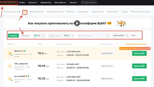 Как перевести USDT в рубли на бирже Bybit
