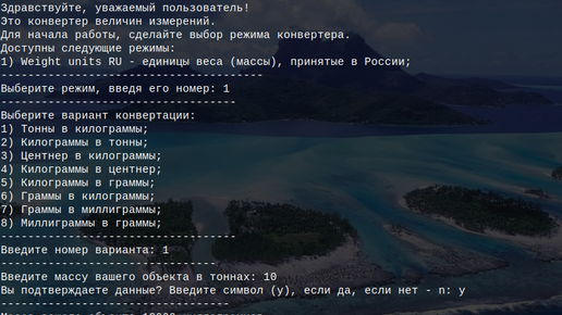 Основная идея программы в том, что пользователь сможет выбирать разные режимы работы Unit converter 001 - Конвертер единиц измерения на С++, и в каждом режиме пользователь сможет выбрать один из нескольких вариантов конвертации, и просто ввести, например, массу условного объекта в тоннах, и получить его вес в килограммах. Weight units RU - единицы веса (массы), принятые в России. Режим конвертера (1). Это единственный доступный режим конвертера на данный момент. Внутри режима пользователю доступны...