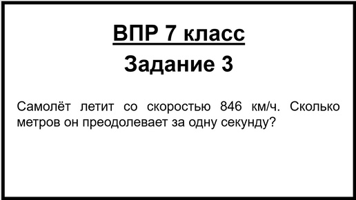 Короткий ответ: самолёт со скоростью 846 км/ч пролетает 235 метров за одну секунду. А теперь разберём по шагам, как это получить. Задание 3 в ВПР по математике для 7 класса часто пугает учеников. Не потому что оно сложное, а потому что дети путаются в единицах измерения. Килограммы, метры, километры, часы, минуты, секунды — голова идёт кругом. В этой задаче самолёт летит со скоростью 846 км/ч, а спрашивают, сколько метров он пролетает за секунду. Разберём по шагам, чтобы больше никогда не ошибаться...