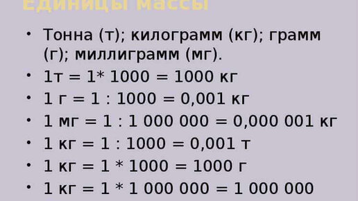 Для того чтобы разобраться, сколько в грамме миллиграммов, необходимо понимать, для измерения какой величины эти показатели применяются. Они необходимы для измерения массы тела. Вряд ли вам в обыденной жизни понадобится точное определение этой физической величины. Упрощенно можно сказать, что масса – это количество вещества, она равняется плотности вещества, умноженной на его объём. В общепринятой международной системе СИ массу тела измеряют в килограммах. Для определения массы тяжелых предметов используются внесистемные единицы измерения, такие как центнер, тонна...