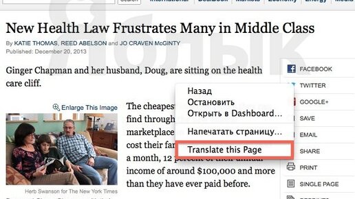 Как переводить страницу в Safari плагином Translation?