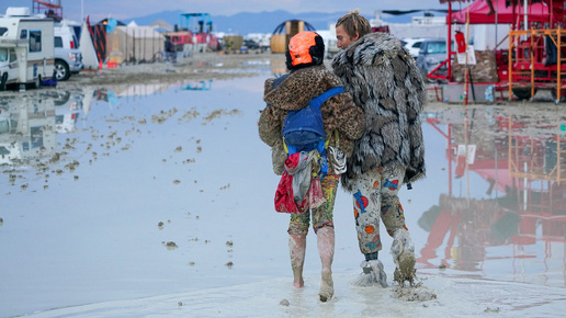 Всем привет! Мы говорим про Burning Man и про то, как пережить дождь, который там всё-таки бывает. Информация о буре, грозе или шторме иногда вызывает тревогу, особенно у тех, кто едет впервые. Но давайте разберёмся. Почти никогда вы не столкнётесь там с сильным дождём или настоящим штормом. Но иногда исключения всё же случаются. Например, в 2022 году дожди шли несколько дней подряд, и многих это застало врасплох. В 2025 году ситуация повторилась - пару дней были довольно влажными. Поэтому к этому стоит быть готовыми...