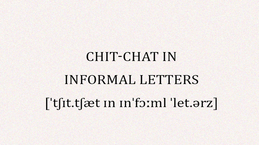 Chit-chat — это небольшая «болтовня» между друзьями ТОЛЬКО в неформальных письмах.