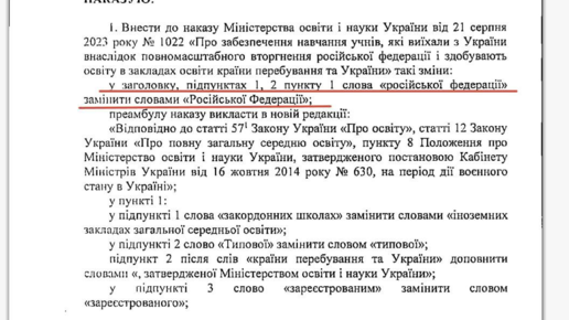 Больше года "российская федерация", "россия", "москва" и другие такие наименования наши братья пишут с маленькой буквы. Что это меняло или меняет не ясно, но в рамках пропаганды на умы, наверняка, какое-то влияние имеет. И вот незадачка... Настоящая зрада вышла Министерство образования издало приказ о том, что Российская Федерация нужно снова писать с большой буквы...