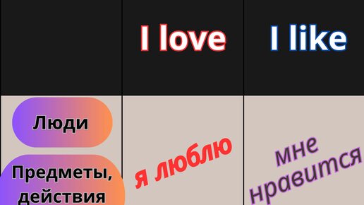 Глаголы love и like оба имеют значение "любить". Основное различие в том, что 📌 Глагол to love если применяется к людям, то означает любить I love them (Я люблю их) если относится к предметам, то означает обожать I love music (Я обожаю музыку) 📌 Глагол to like если применяется к предметам или делам вообще, переводится как любить I like music (Я люблю музыку) если к людям или конкретным вещам, животным, то переводится как нравится I like them (Мне они нравятся) I love them Я люблю их I...