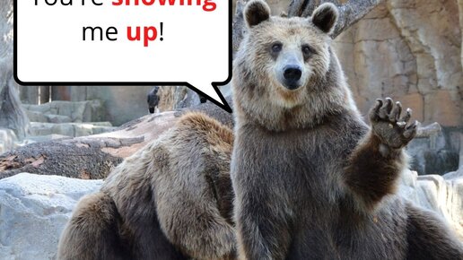 Фразовые глаголы - это трудность в английском языке. Поэтому их необходимо учить. Но учить глагол за глаголом скучно, поэтому я подготовила для вас забавные картинки с примерами, иллюстрирующие употребление show как фразового глагола...