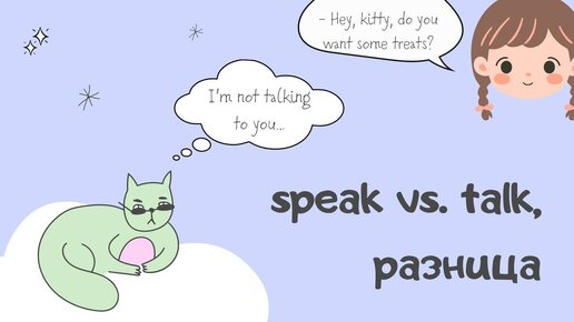 Начнем с глагола speak - разговаривать, говорить, владеть речью, владеть языком. Это неправильный глагол - speak – spoke – spoken, используется в более формальных ситуациях. 1) Первое значение глагола to speak – говорить, разговаривать При разговоре с кем-то после глагола to speak ставим to или with. Разница в использовании этих предлогов минимальная, но есть: I am speaking to my cat. - Я разговариваю с моим котом. (говорю преимущественно я) Raisa spoke with Tamara an hour ago.- Раиса разговаривала с Тамарой час назад...
