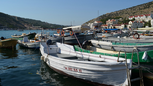Хоть и переводится название этого милого курортного городка не очень аппетитно – «рыбный мешок», мы всё равно поехали сюда, потому что знали, что Балаклавская бухта – это никакой не мешок, а оочень красивое место. Пусть Ницца и Монте-Карло отдохнут пока без нас. В общем, махнули мы сюда со своего места дислокации за 2000 рэ на такси туда-обратно с ожиданием пару часов. Дорога от Андреевки петляет вдоль виноградников и занимает чуть больше 40 минут. Балаклавская бухта – одна из самых удобных на Черном море для швартовки кораблей, бывшая база подводных лодок, в ней не бывает штормов...