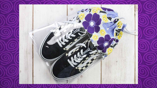 Прозрачная часть этого удобного мешочка позволит вам сразу увидеть, что внутри! Плюс — водонепроницаемый винил не позволит испачкать сумку, если обувь грязная или мокрая. Такой мешочек выручит в ситуациях, когда вам нужно уберечь внутренности сумки или чемодана от грязной обуви. Водонепроницаемый винил, который используется для этого проекта, убережёт остальные вещи. К тому же, прозрачный винил сразу даёт увидеть, что внутри мешочка. Поэтому в нём можно как перевозить обувь, так и хранить. Подробный мастер-класс о том, как сшить простой мешок, ищите по ссылке...