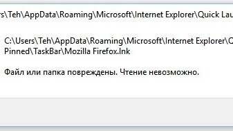 Еще одна заметка из серии «испытано на себе». Сегодня после скачка электричества и перезагрузки компьютера перестал запускаться Firefox с ярлыка с панели задач — появлялась ошибка «Файл или папка повреждены. Чтение невозможно.». Ярлык, размещенный на рабочем столе тоже не работал. Сначала я решил проверить файл-ярлык. Где он находится, указано в сообщение об ошибке. Так и есть, ярлык почему-то оказался неработоспособным. Потом я перепутал папки и вместо Program Files почему-то отправился в папку Program Files (x86), где попытался запустить firefox...