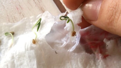 Проращивание семян не обязательно делать, но огородники часто используют различные способы проращивания семян, чтобы ускорить появление всходов, повысить процент всхожести. При проращивании мы создаём для проклёвывания семян наиболее благоприятные условия, они защищены от инфекции, которая может находиться в почве. Очень простой и удобный способ проращивания семян на туалетной бумаге в «самокрутке» был описан тут. Также можно проращивать семена на слое влажных бумажных салфеток или туалетной бумаге без закручивания в рулон...