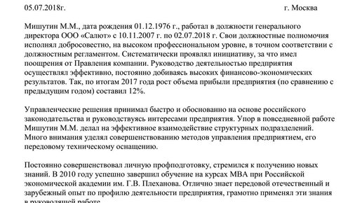 Характеристика на руководителя с места работы (образец)