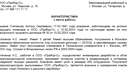 Среди специалистов по работе с персоналом есть мнение, что характеристика с места работы – пережиток прошлого и простая формальность. Особенно если речь идет о характеристике от бывшего работодателя, которую кандидат предоставляет в качестве рекомендательного письма. Но, как бы там ни было, характеристики запрашивают и пишут до сих пор – в том числе для суда, для военкомата, а также когда сотрудника выдвигают на повышение или получение награды. А это значит, что нужно уметь их правильно писать...